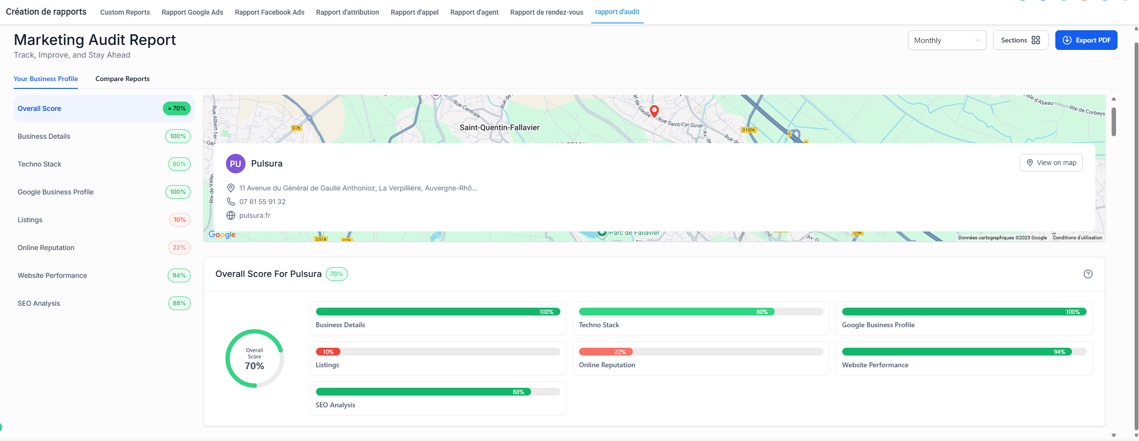 Suivez vos performances, votre réputation, fiches Google et site web et optimisez votre structure jour après jour.