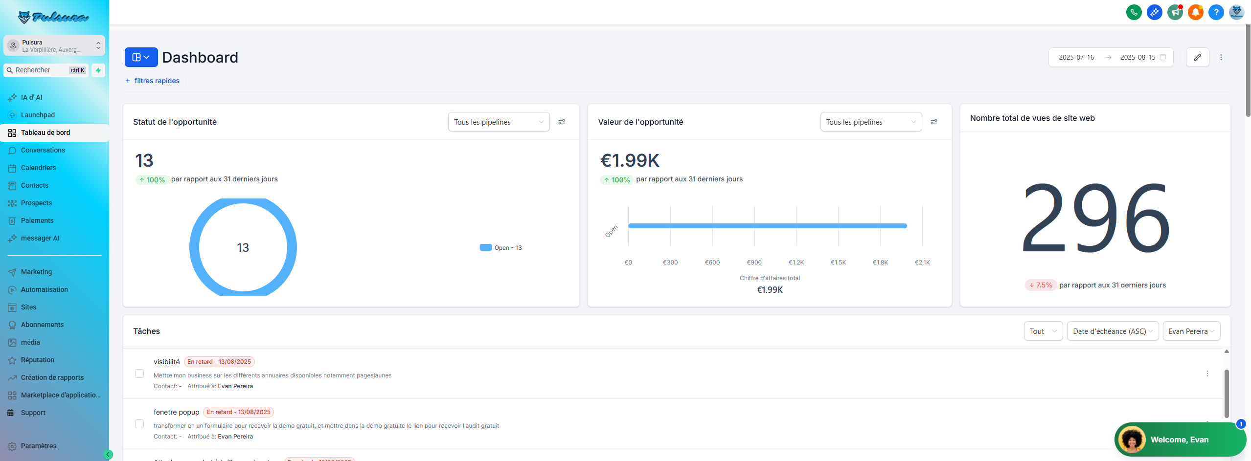 "Pulsura, c’est l’outil 360° qu’il nous manquait : Fidélisation clients, création de site web intégré, automatisation avec l'IA… Tout est fluide. Et ce qui est top : les résultats sont visibles immédiatement via le tableau de bord et les audits réguliers. On sait exactement où on en est.